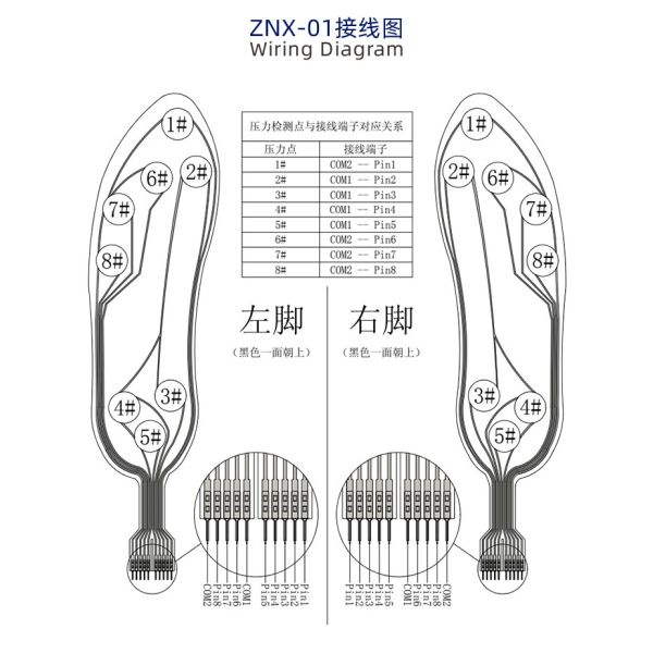 The ZNX-01 flexible film pressure sensor is a resistive sensor. The output resistance decreases as the pressure applied to the surface of the sensor increases. Through a specific pressure-resistance relationship, the pressure can be measured. Set the ZNX-01 sensor For the sole, it can detect the plantar pressure when the human body is standing and walking, and the detection data can be used for plantar pressure analysis.